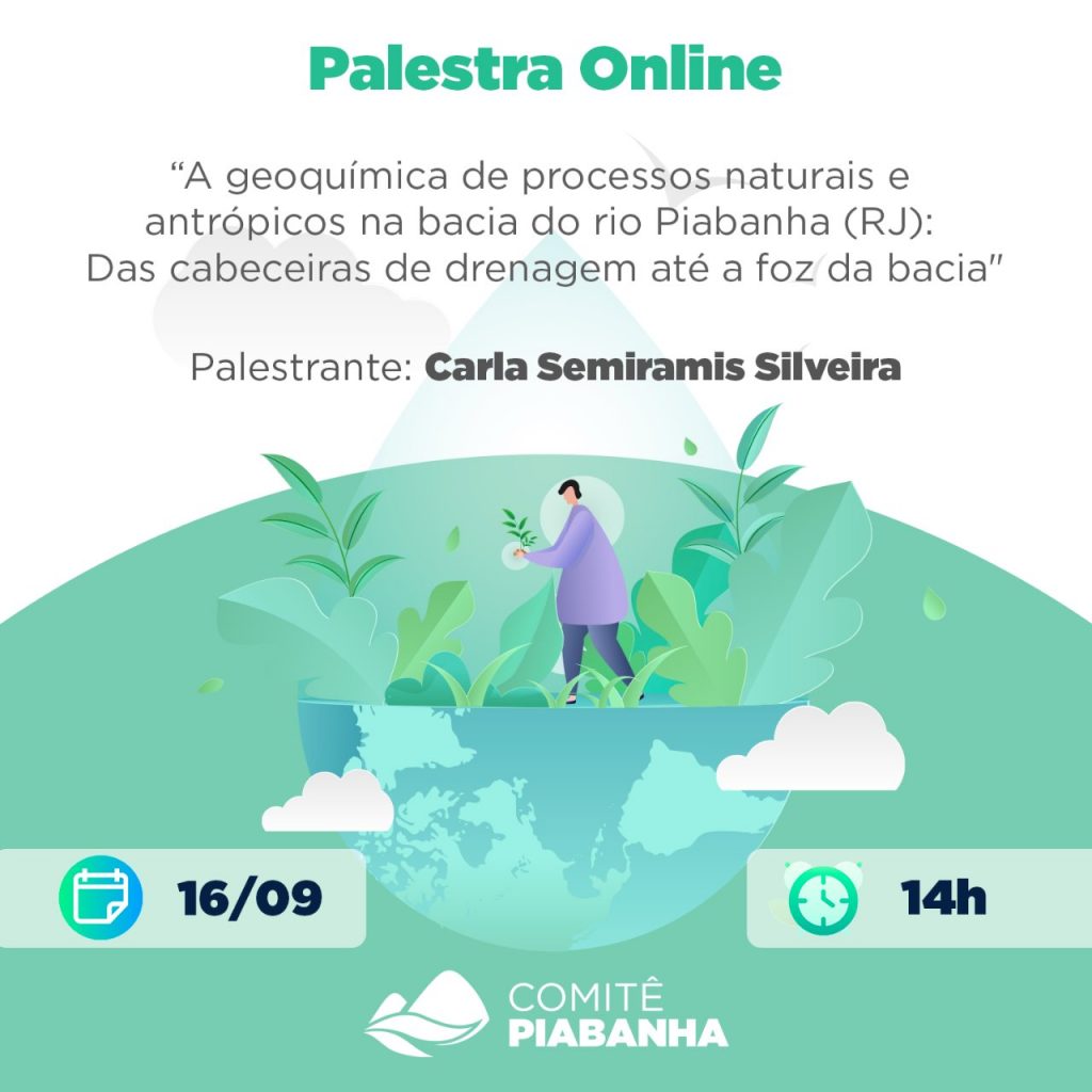 A palestra será ministrada pela pesquisadora Carla Semiramis Silveira, e terá como tema: “A geoquímica de processos naturais e antrópicos na bacia do rio Piabanha (RJ): das cabeceiras de drenagem até a foz da bacia”.