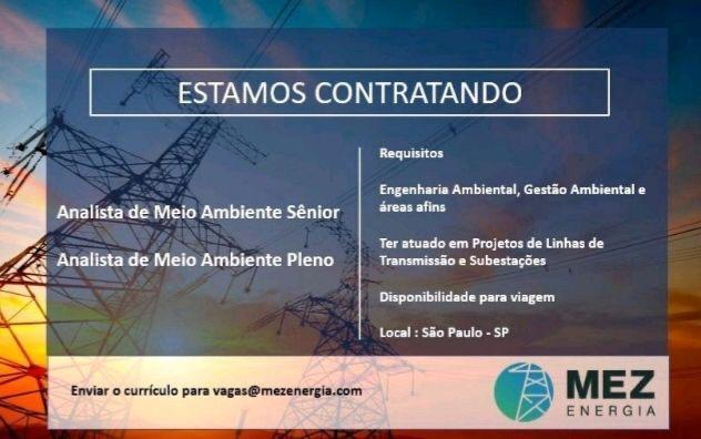 Analista de Meio Ambiente Sênior e Analista de Meio Ambiente Pleno, MEZ Energia