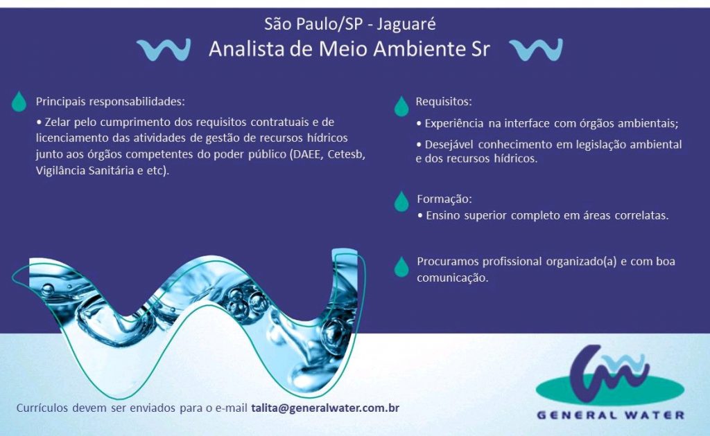 Analista de Meio Ambiente Sr, General Water – São Paulo/SP