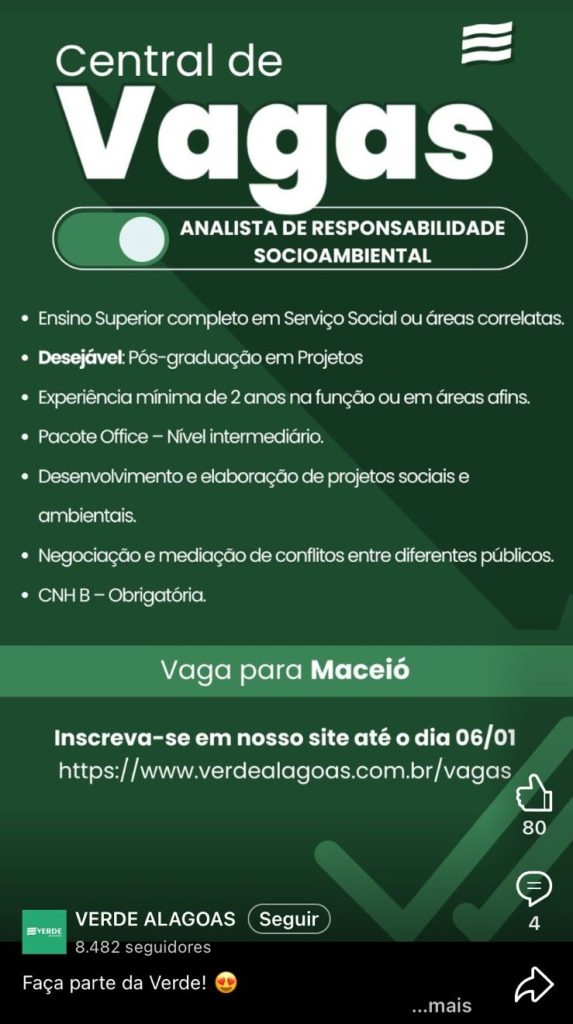 Analista de Responsabilidade Socioambiental, Verde Alagoas
