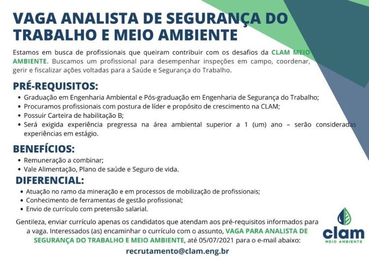 Analista de Segurança do Trabalho e Meio Ambiente, Clam Meio Ambiente