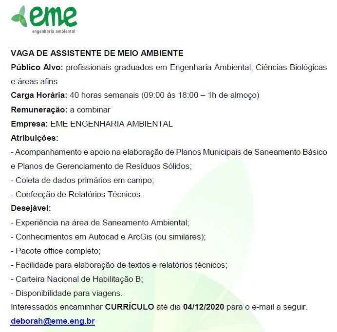 Assistente de Meio Ambiente, EME Engenharia Ambiental