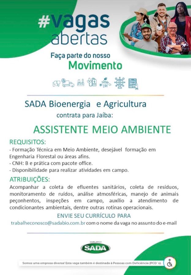 Assistente Meio Ambiente, SADA Bioenergia e Agricultura