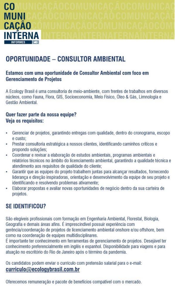 Consultor Ambiental com foco em Gerenciamento de Projetos