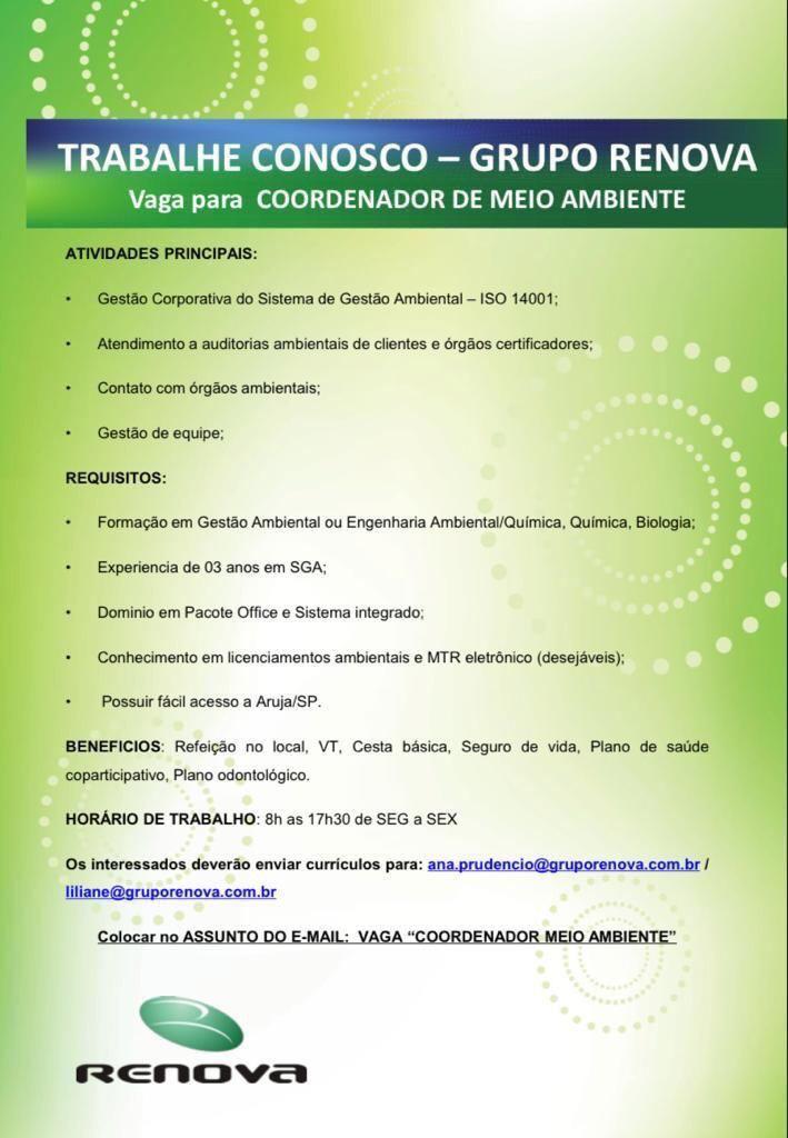 Coordenador(a) de Meio Ambiente, Grupo Renova