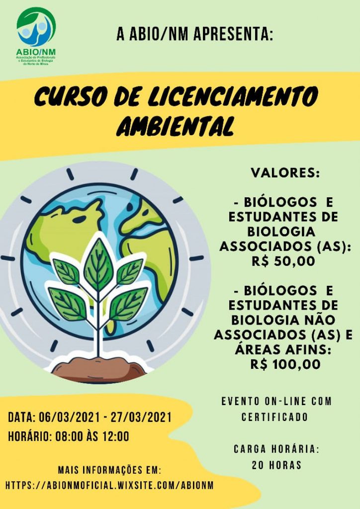 Para mais informações, acesse: https://abionmoficial.wixsite.com/abionm/post/curso-de-licenciamento-ambiental-abio-nm