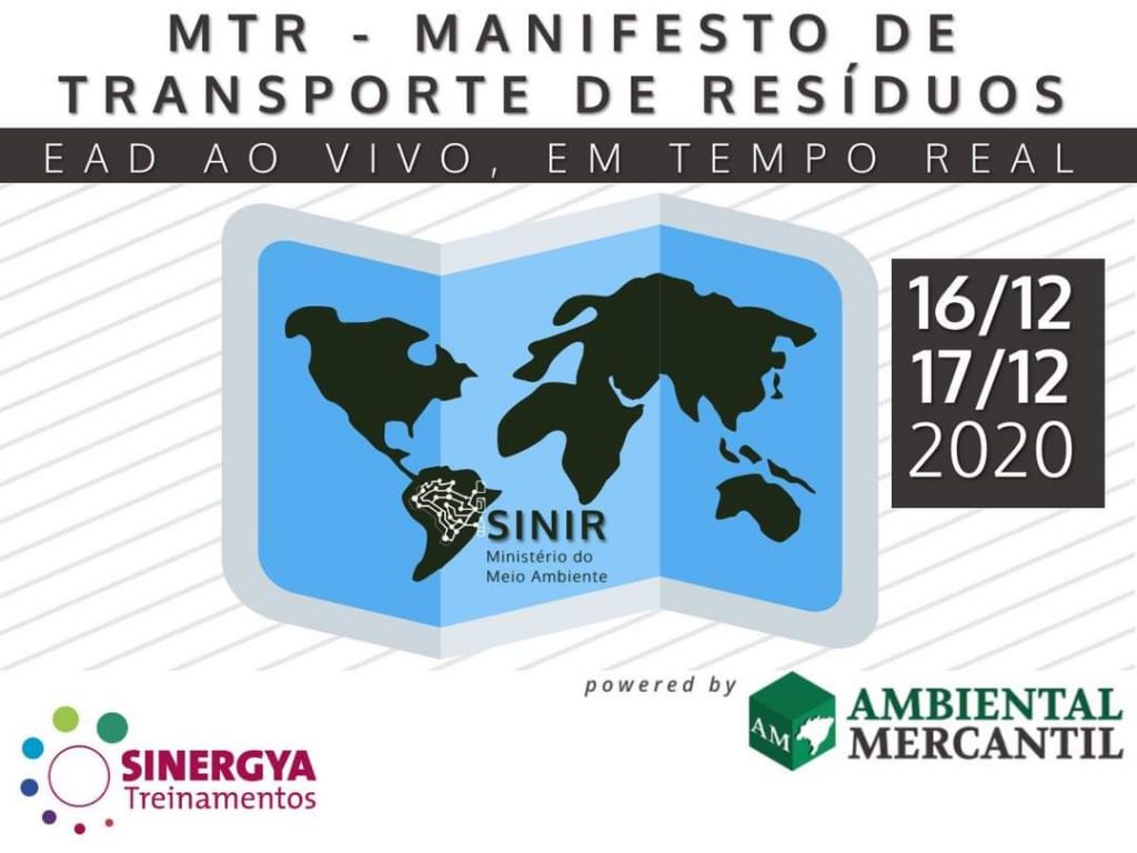 Nos dias 16/12 e 17/12 acontece o curso sobre MTR – MANIFESTO DE TRANSPORTE DE RESÍDUOS (NACIONAL). O curso é online e em tempo real. O MMA instituiu o MTR como uma ferramenta online, autodeclaratório, válido no território nacional, emitido pelo Sistema Nacional de Informações sobre a Gestão de Resíduos Sólidos – SINIR.