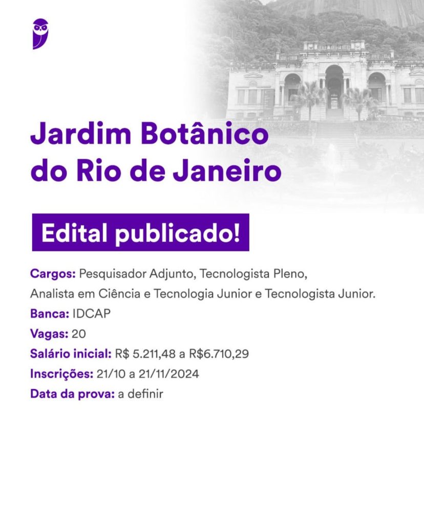 Edital Publicado – Jardim Botânico do Rio de Janeiro