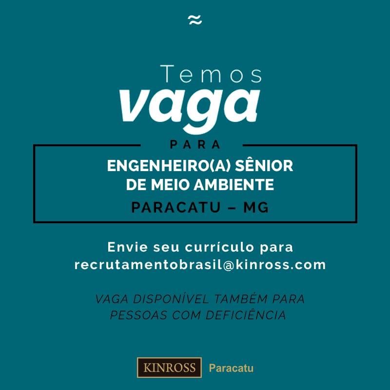 Para se candidatar, envie seu currículo para recrutamentobrasil@kinross.com, indicando o cargo (Engenheiro(a) Sênior de Meio Ambiente) no assunto do e-mail.