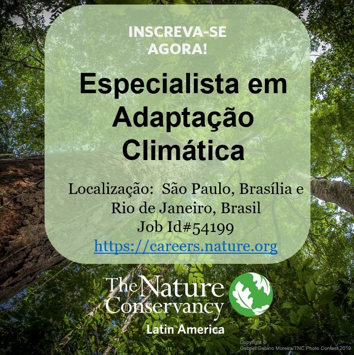 Abertura de vaga da estratégia de sistemas de água & alimentos da TNC Brasil para especialista em adaptação climática.