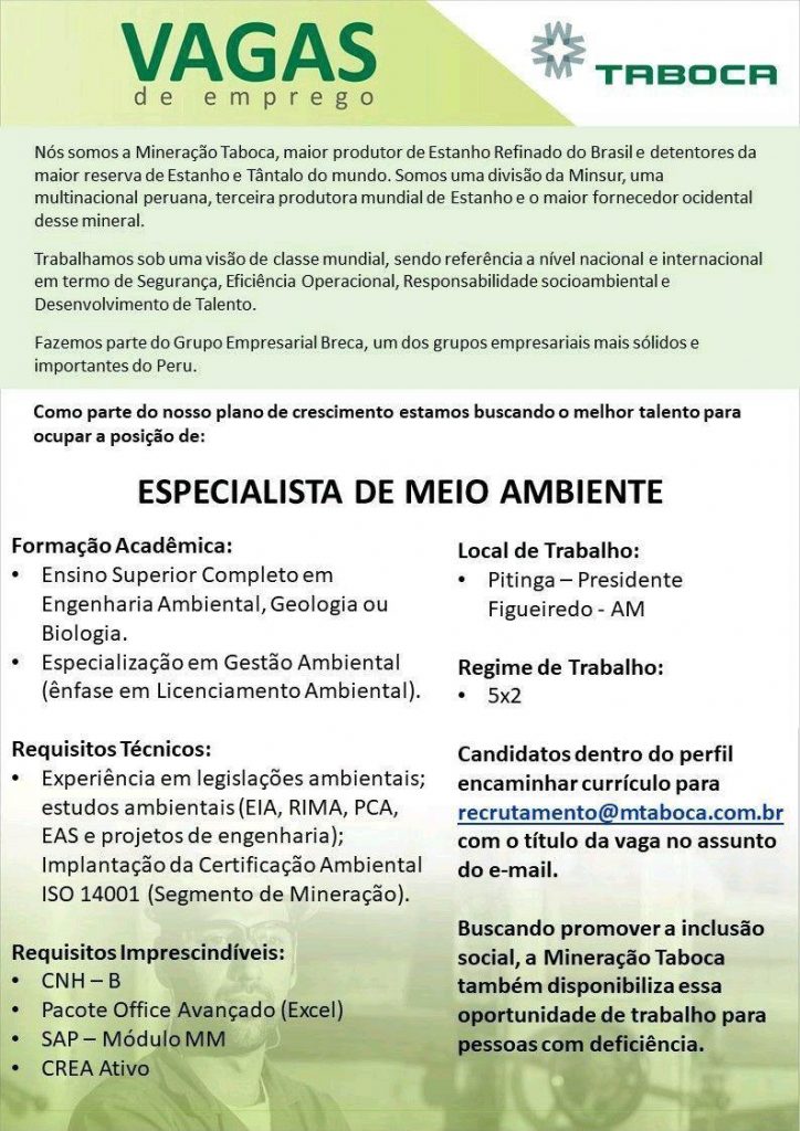 Especialista em Meio Ambiente, Taboca