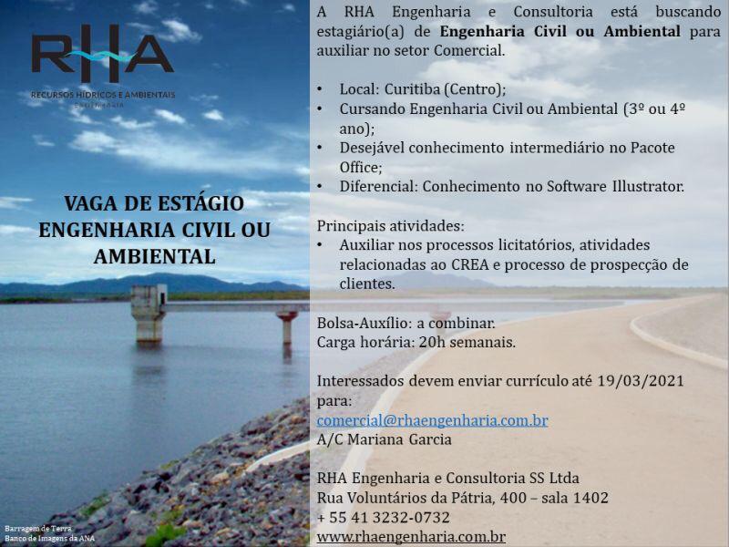Estágio Engenharia Civil ou Ambiental, RHA Engenharia