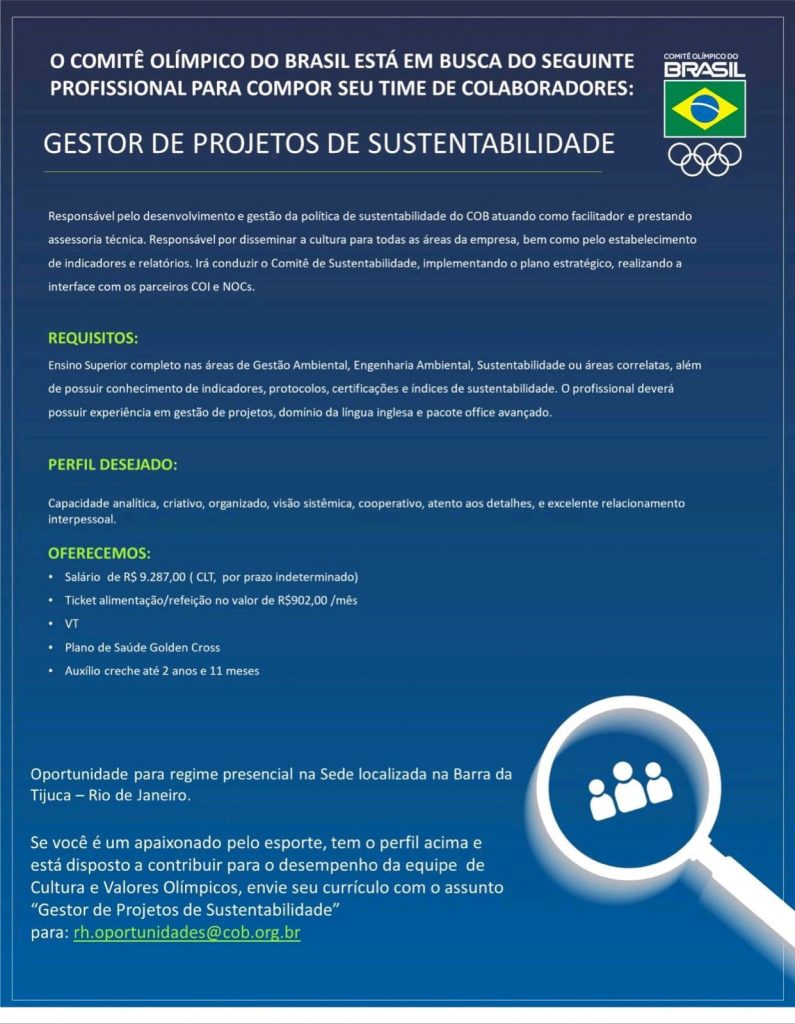 Gestor de Projetos de Sustentabilidade, Comitê Olímpico do Brasil