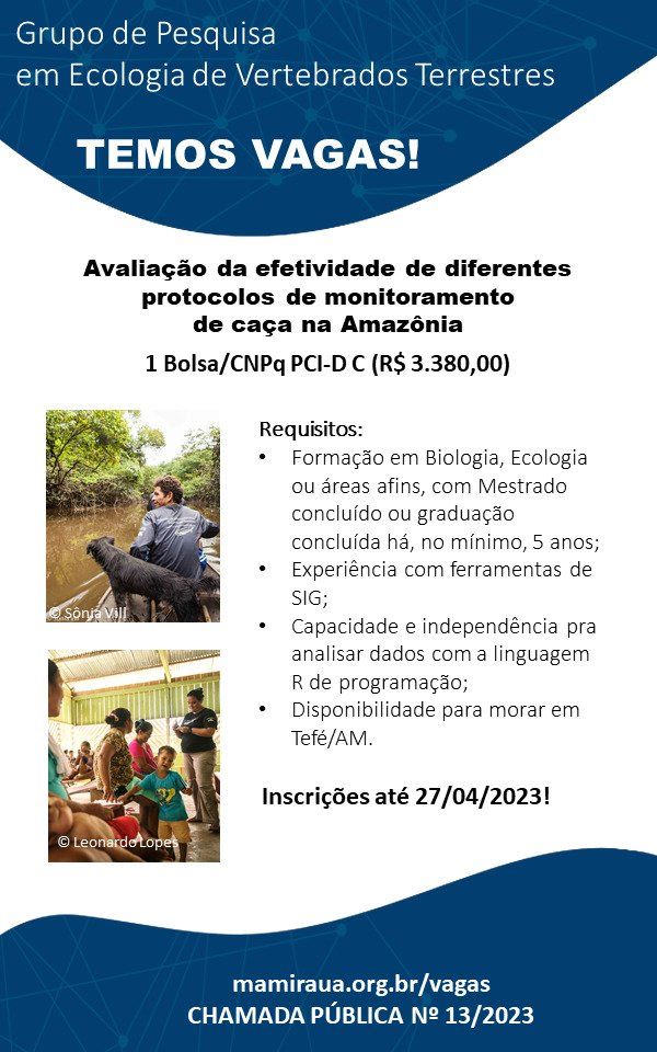 Grupo de Pesquisa dem Ecologia de Vertebrados Terrestres – Avaliação da efetividade de diferentes protocolos de monitoramento de caça na Amazônia