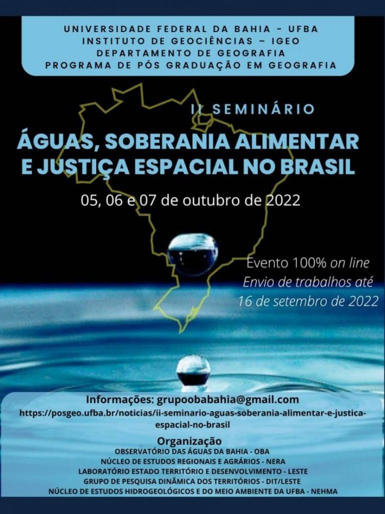 Para mais informações acesse: https://posgeo.ufba.br/noticias/ii-seminario-aguas-soberania-alimentar-e-justica-espacial-no-brasil