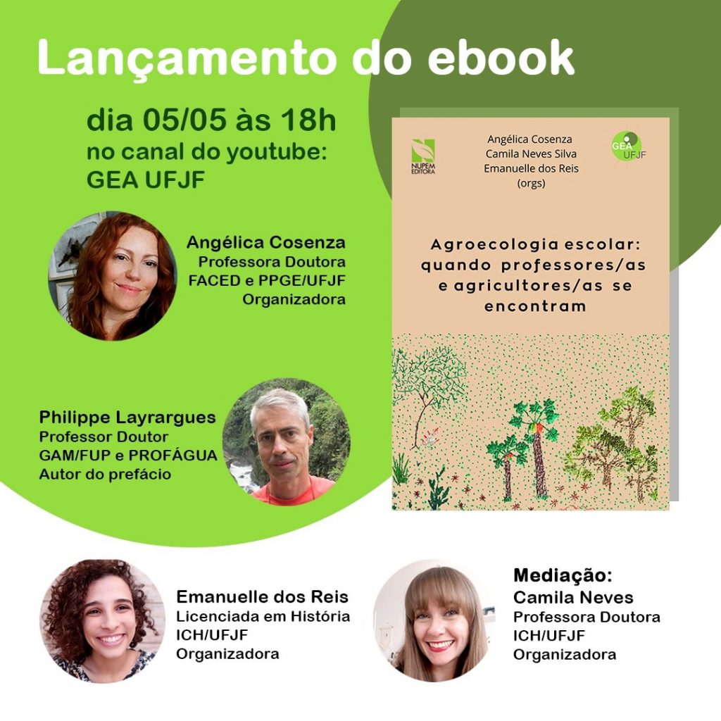 É com grande satisfação que o GEA UFJF convida a todes para a live de lançamento do Livro “Agroecologia escolar: quando professores/as e agricultures/as se encontram” – Editora Nupem.