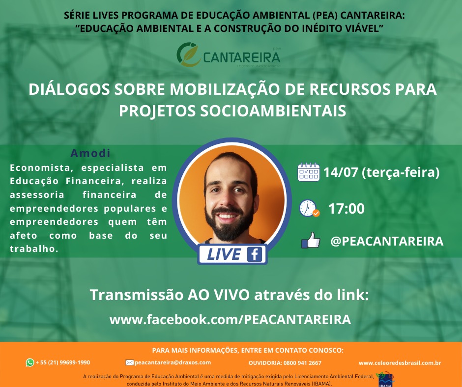 O diálogo será sobre Mobilização de Recursos para Projetos Socioambientais com o Amodi – Economista, especialista em Educação Financeira.