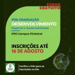 O IFRJ Campus Pinheiral está com inscrições abertas para o curso gratuito de Pós-Graduação em Desenvolvimento Regional e Sustentabilidade, na modalidade presencial. São 10 vagas abertas! Aulas às terças e quintas-feiras, das 18h às 22h (regular); sábados, das 09h às 13h (eventual) A proposta do curso de especialização em Desenvolvimento Regional e Sustentabilidade é tratar […]