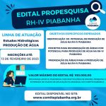 O Comitê Piabanha torna público o Edital de Chamamento Público nº008/2022, cujo objeto é a manifestação de interesse para seleção pública de Instituições de Ensino Superior para Programa de Fomento à Pesquisa em Gestão de Recursos Hídricos.A linha de atuação do Edital é Estudos Hidrológicas e as inscrições podem ser realizadas até dia 13/02/2023.PROPESQUISA: Estudos […]