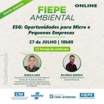A 5ª edição do FIEPE Ambiental será no dia 27 de julho, a partir das 18h, com o tema “ESG: Oportunidades para Micro e Pequenas Empresas”. O evento é gratuito, entregará certificados aos participantes inscritos e será realizado de maneira online. Para participar, basta fazer sua inscrição pelo link: https://forms.gle/am5X64zqLnSC47uX7