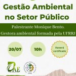 Quinta-feira, dia 20 de julho, às 10h, teremos roda de conversa “Gestão Ambiental no Setor Público”, com a gestora ambiental, egressa do curso de gestão ambiental da UFRRJ, Monique Bento. O evento será na sala 217 A, no Instituto Três Rios/ UFRRJ. Logo mais, informações sobre as inscrições do evento no SIGAA. O evento é […]