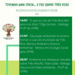 O PET Conexões de Saberes apresenta o 1° ciclo de palestras, totalmente virtuais, do projeto ‘Tivemos uma ideia… e foi sobre Três Rios’. Não percam!! Haverá emissão de certificados! Para mais informações: @conexaopetitr – Instagram