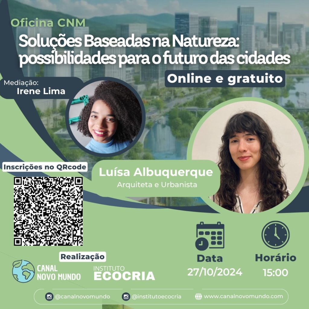 Pensando nisso, o Canal Novo Mundo convida você para a “Oficina CNM: Soluções Baseadas na Natureza e o futuro das Cidades”