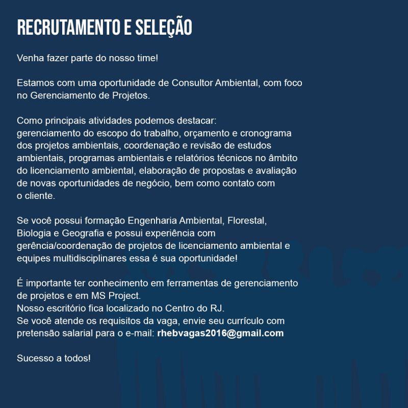 Consultor Ambiental com foco no Gerenciamento de Projetos