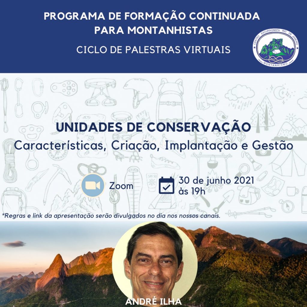 Para mais informações acesse: https://cerj.org.br/palestra-unidades-de-conservacao-caracteristicas-criacao-implantacao-e-gestao-andre-ilha-30-06-21/