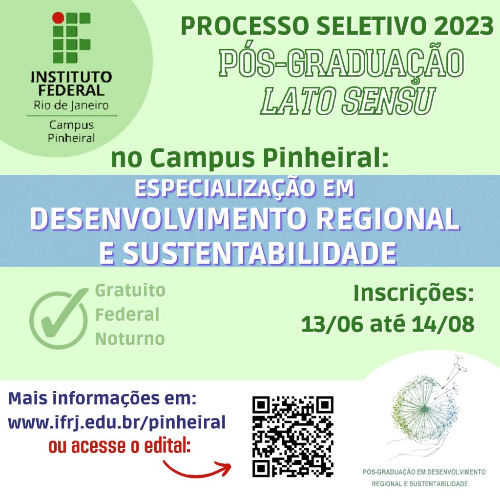 Processo Seletivo 2023: Pós-Graduação Lato Sensu em Desenvolvimento Regional e Sustentabilidade, IFRJ Campus Pinheiral