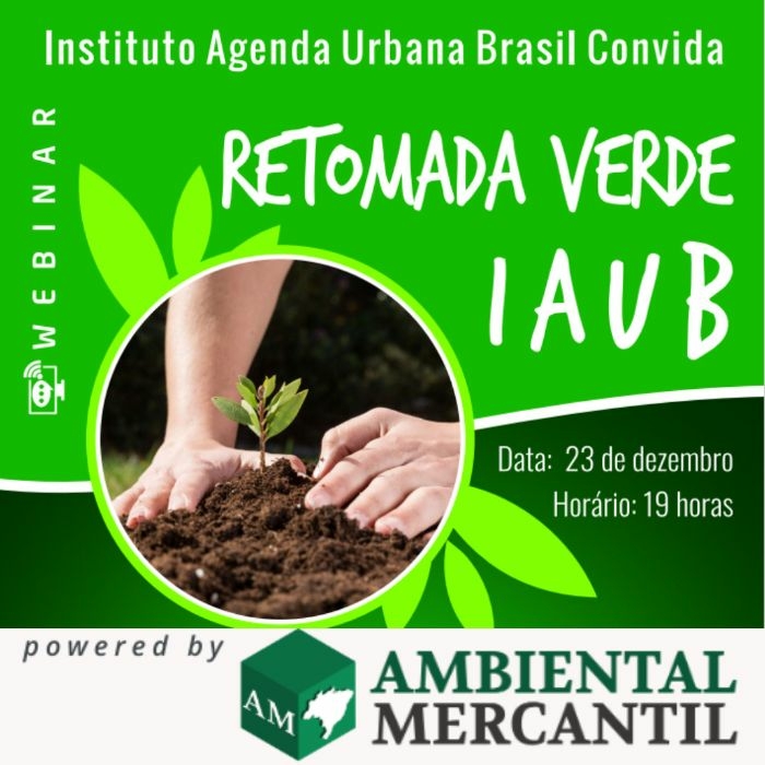 Info: https://ambientalmercantil.com/eventos-webinar-tecnologias-sustentabilidade-residuosolido-tratamentodeagua-saneamento-energias-solar-fv-wastetoenegy-economiacircular/23-12-webinar-sobre-retomada-verde-do-iaub.html