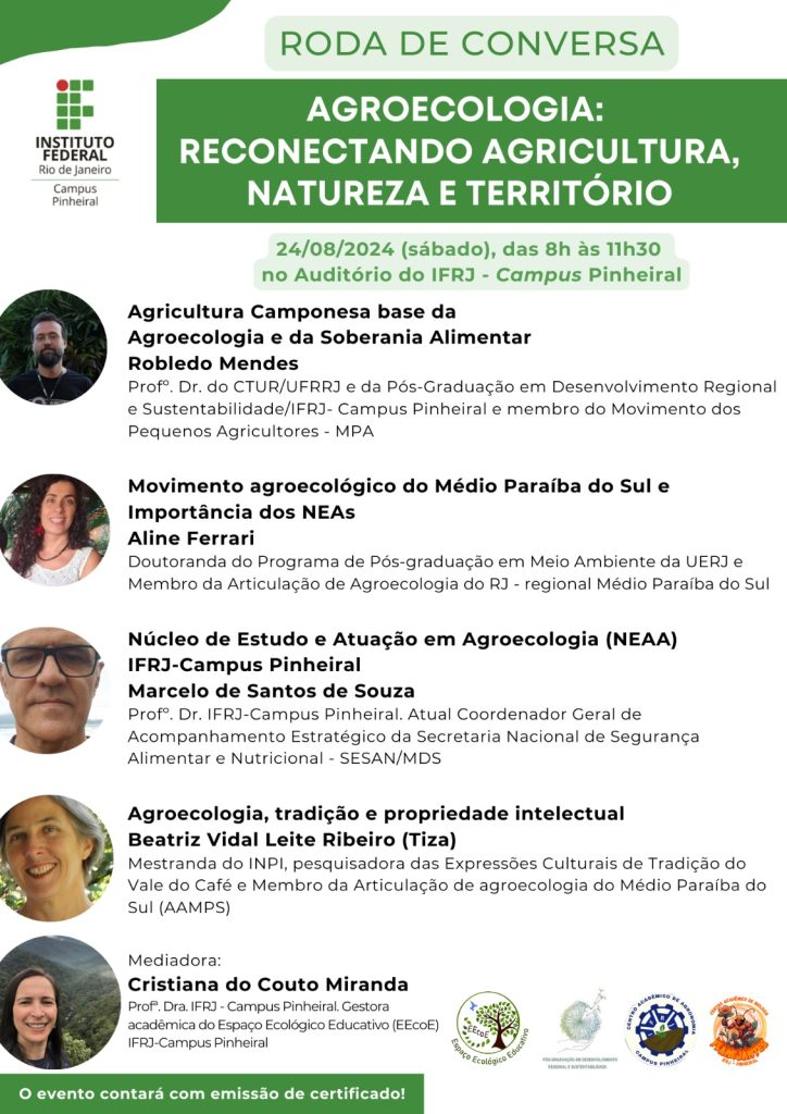 Neste sábado, 24/08/2024, irá acontecer a roda de conversa: “Agroecologia: Reconectando Agricultura, Natureza e Território”.