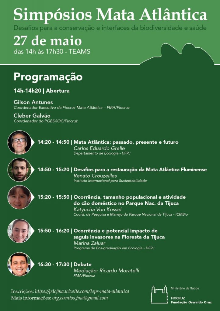 Este será o primeiro de uma série de simpósios organizado pela Fiocruz Mata Atlântica e PPGBS, que ocorrerá ainda esse ano, com o primeiro simpósio em 27/5, próxima quarta-feira.