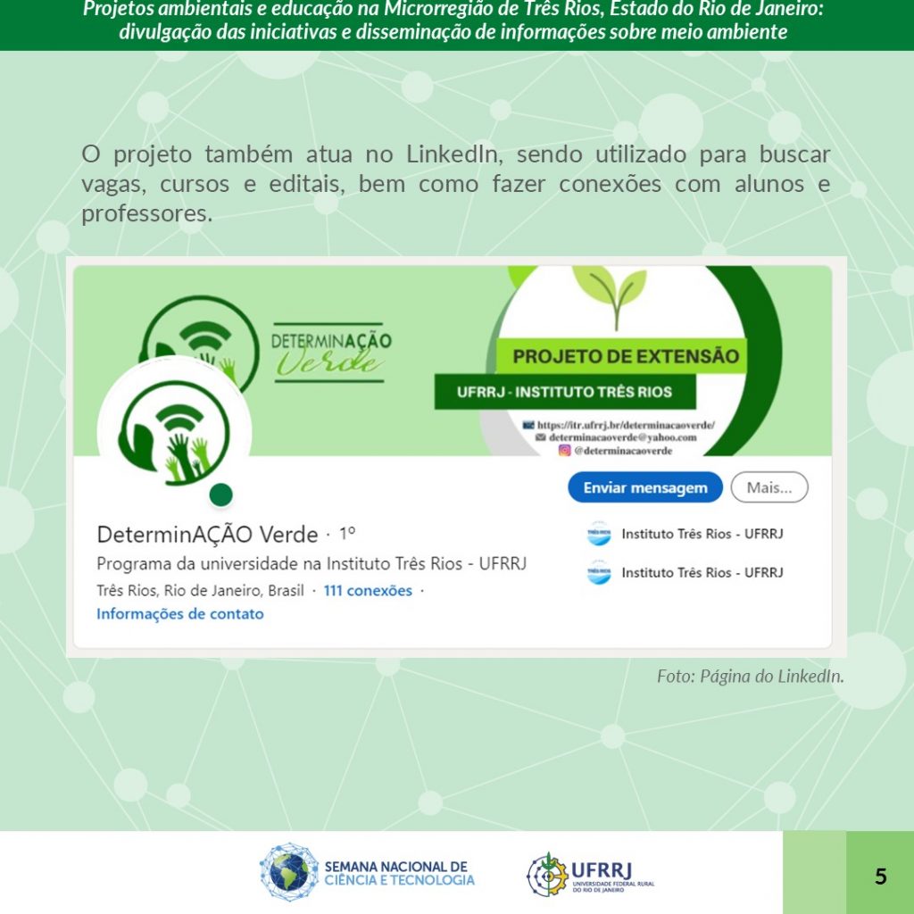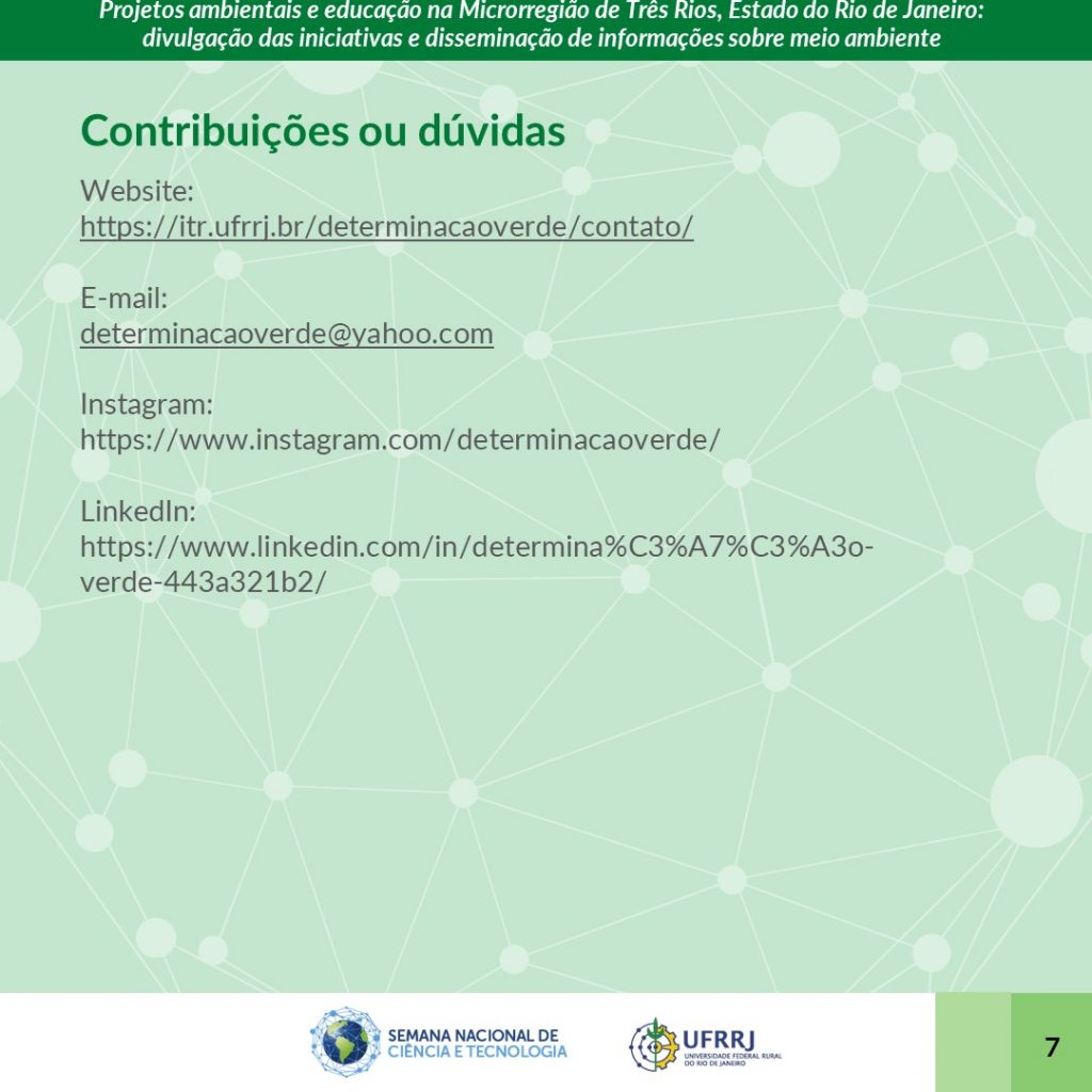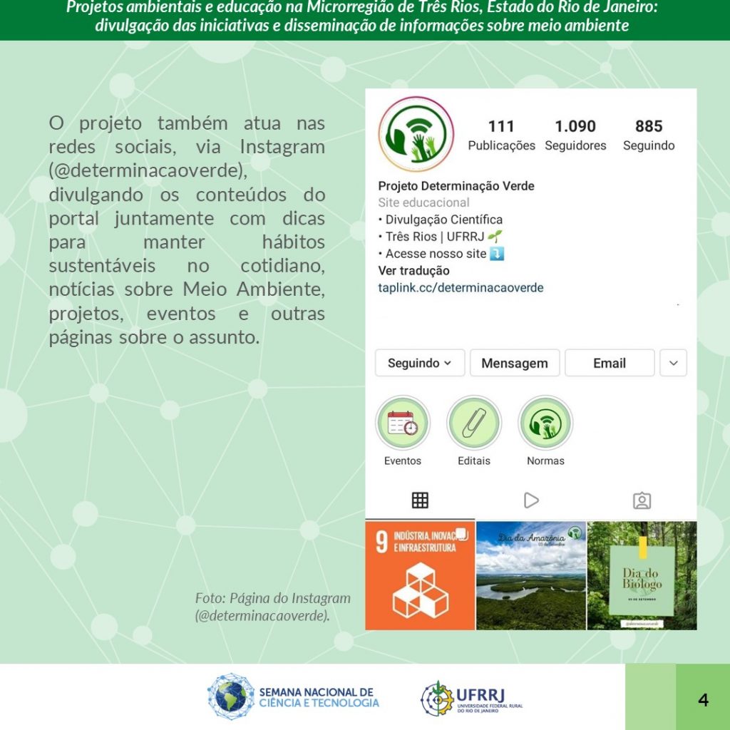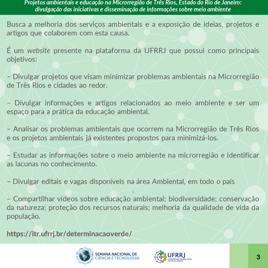 Em 2021, Universidade Federal Rural do Rio de Janeiro promove atividades referentes à SNCT de 04 a 08 de outubro. A iniciativa Determinação Verde participa da SNCT través de cards de divulgação do projeto: