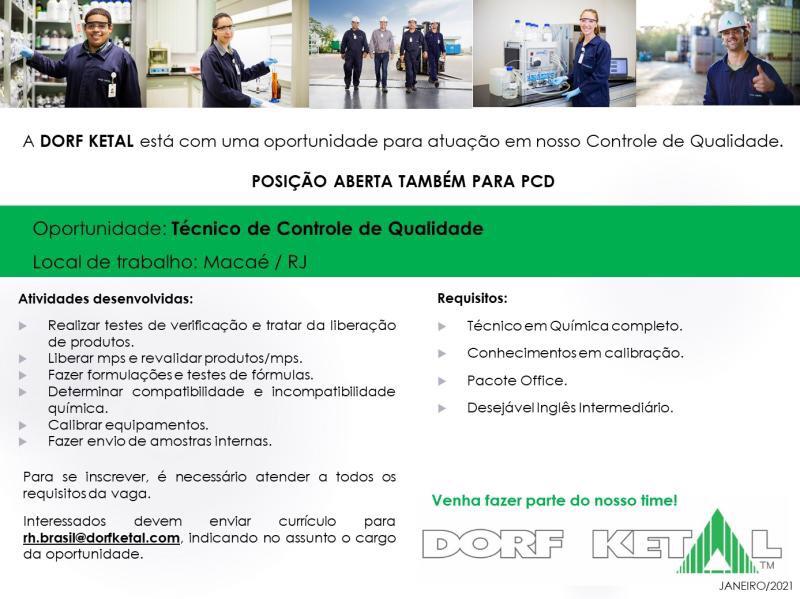 Técnico(a) de Controle de Qualidade, DORF KETAL