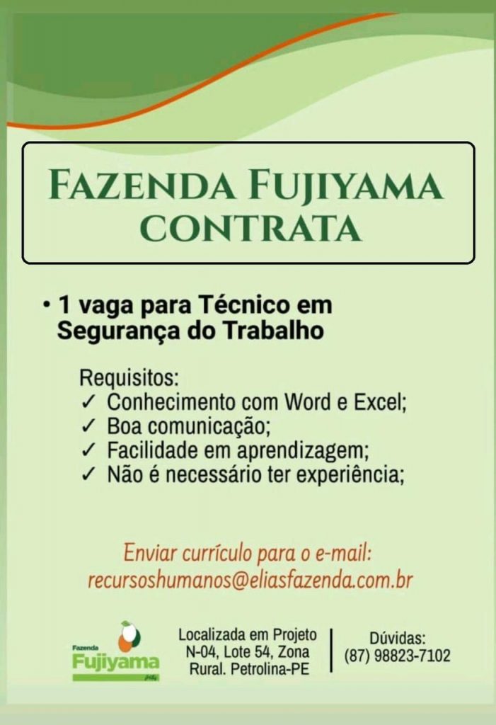 Técnico(a) em Segurança do Trabalho, Fazenda Fujiyama