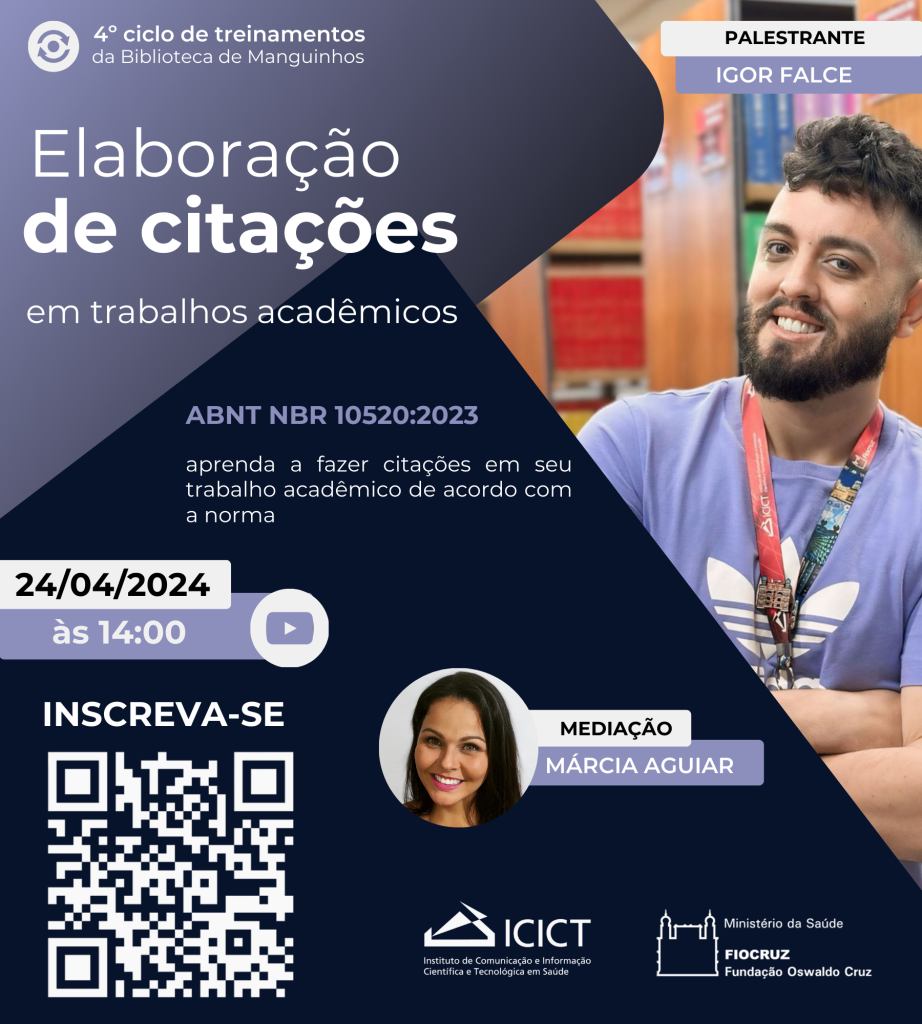 Elaboração de Citações – ABNT NBR 10520:2023 que ocorrerá quarta-feira (24/04/2024) às 14h.