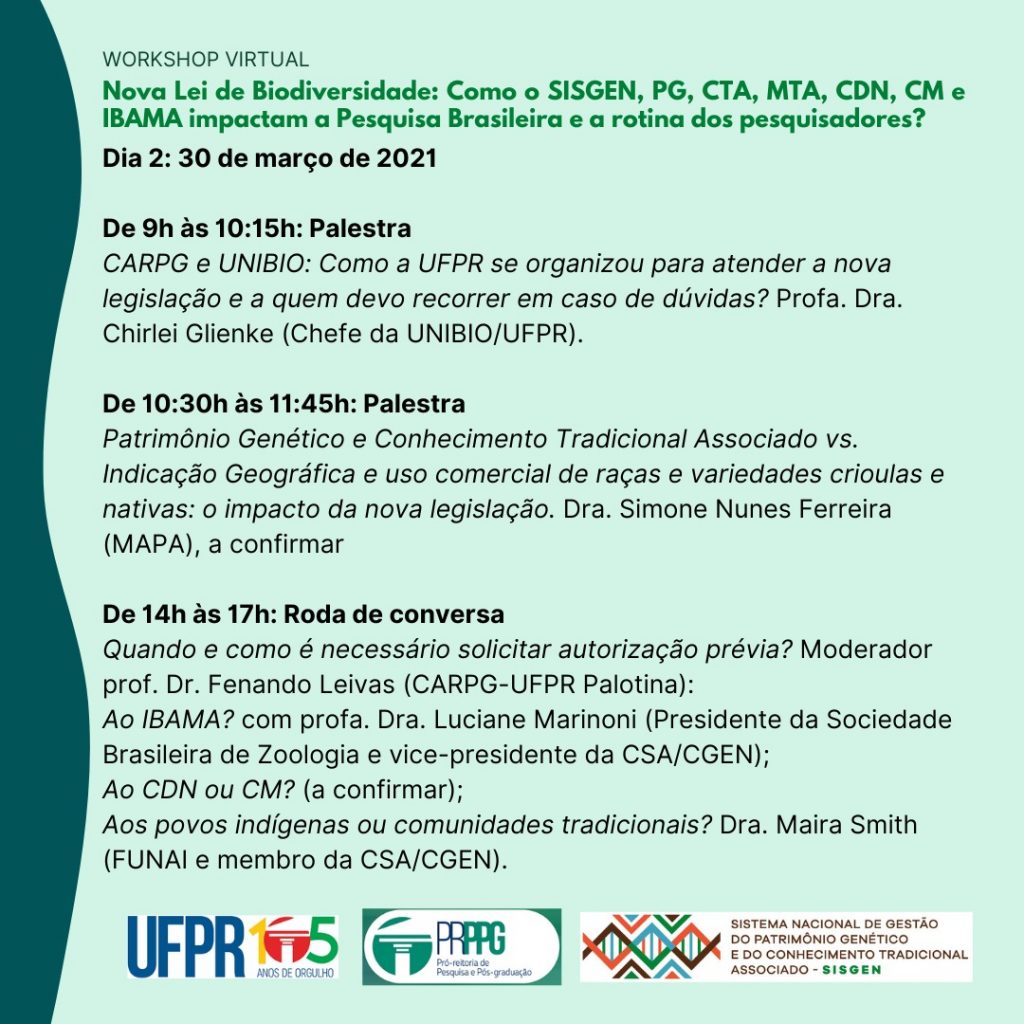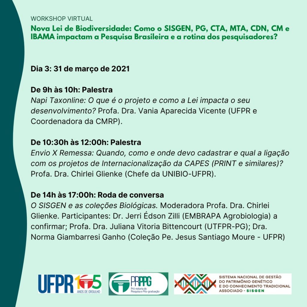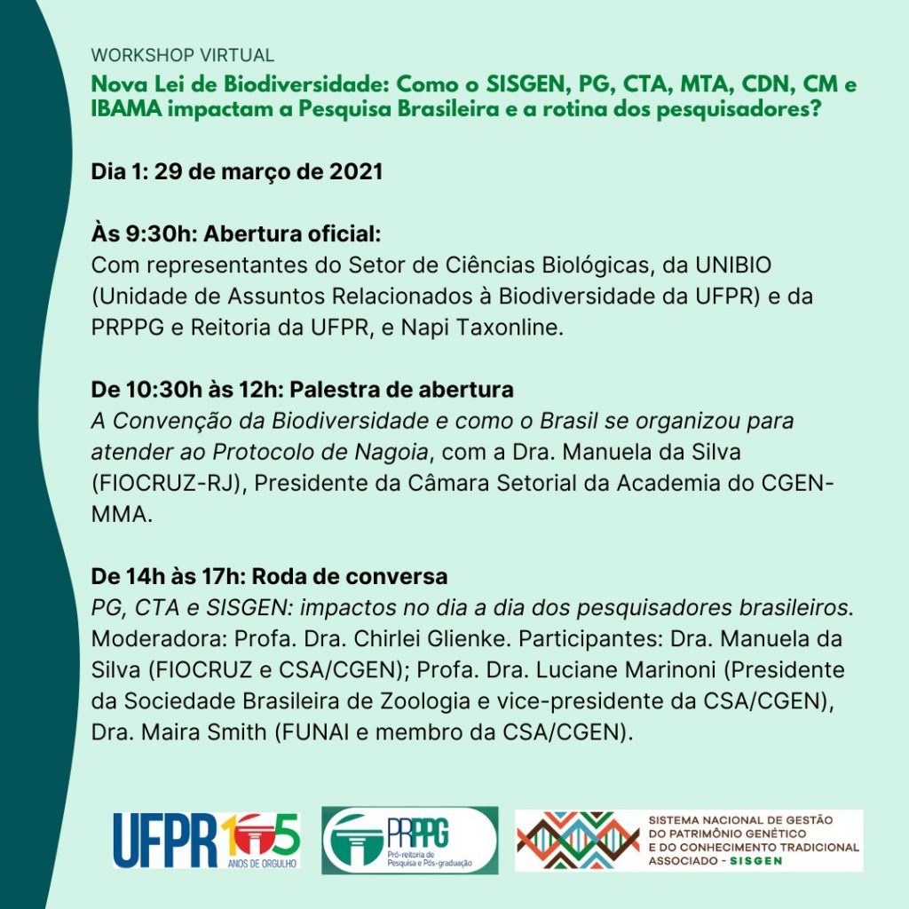 Para mais informações e inscrições acesse: https://www.even3.com.br/wssisgennovaleidabiodiversidade2021/