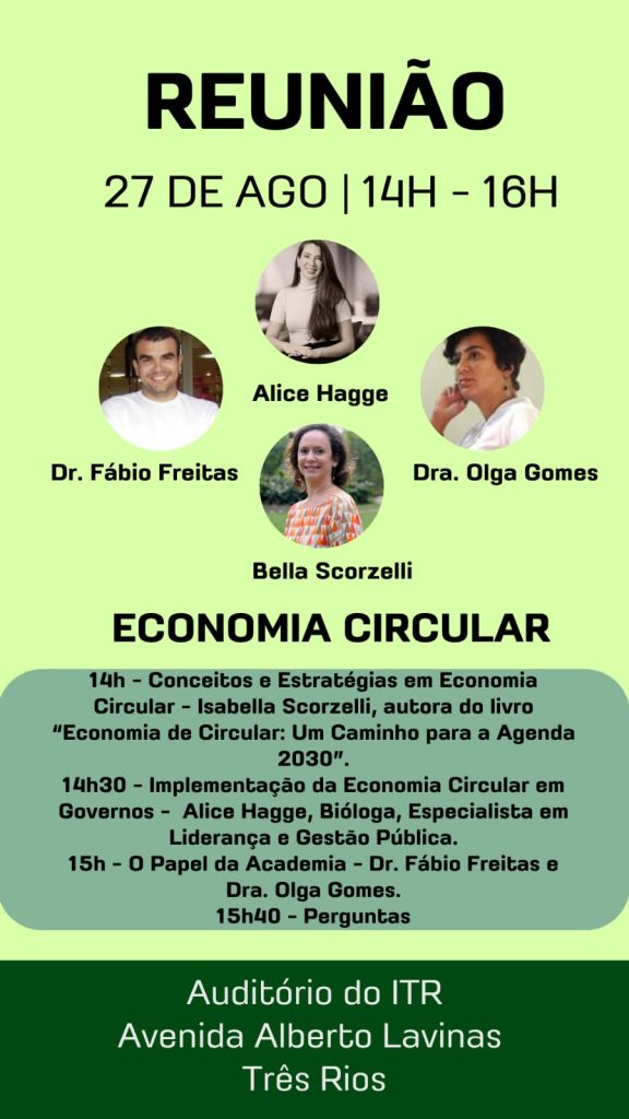 Participe do workshop sobre Economia Circular, que acontecerá no dia 27 das 14 às 16 hrs no auditório do ITR.