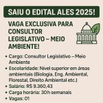 Saiu o edital ALES 2025!Vaga exclusiva para Consultor Legislativo – Meio Ambiente!