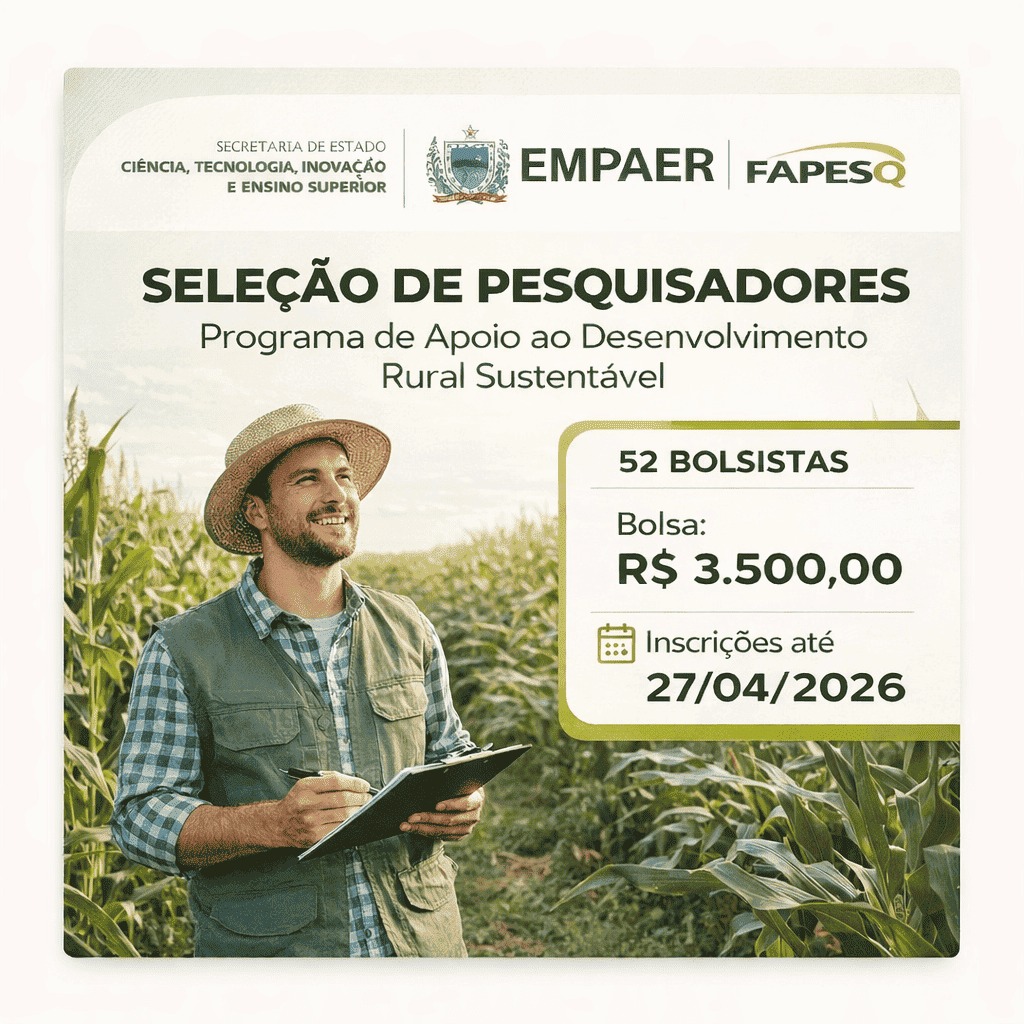 O Governo do Estado da Paraíba, por meio da Secretaria da Ciência, Tecnologia, Inovação e Ensino Superior (SECTIES), da EMPAER e da FAPESQ, acaba de lançar o Edital nº 11/2026.
