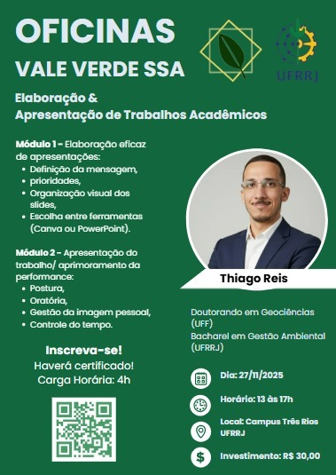 Inscrição: https://www.even3.com.br/oficinas-vale-verde-ssa-656722/