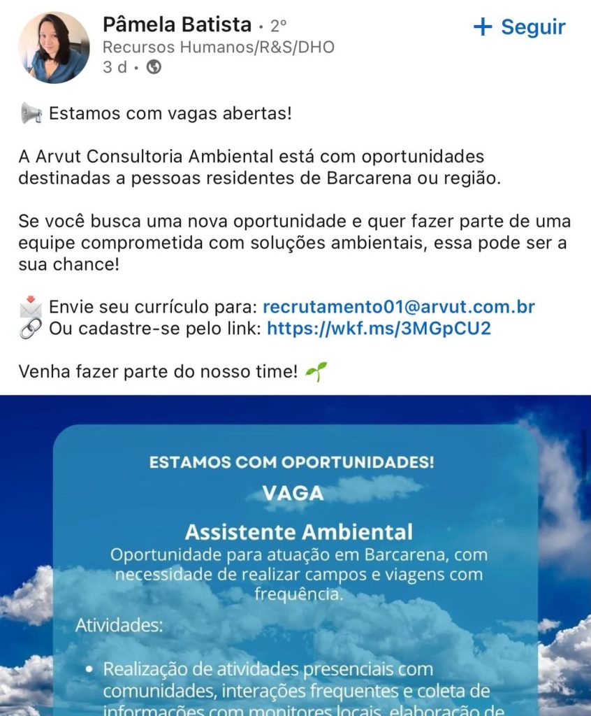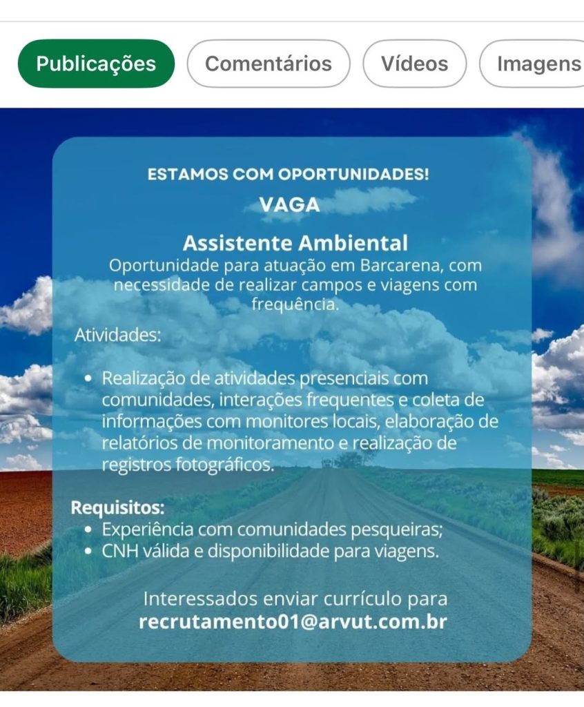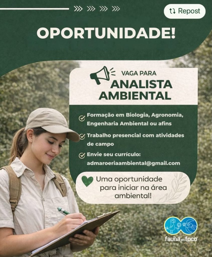 Vaga Aberta: Coordenação de Educação Ambiental do Projeto Aruanã! 16 de abril de 2026