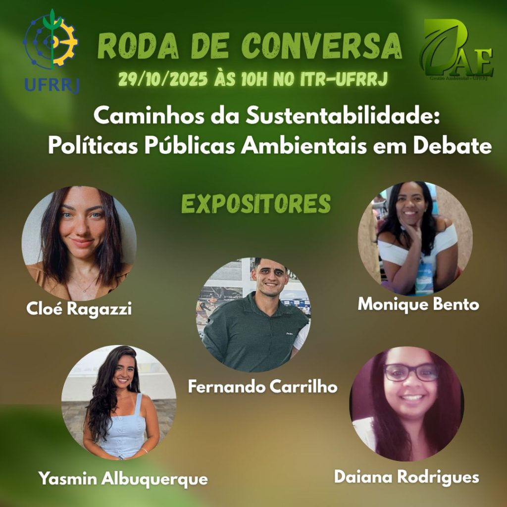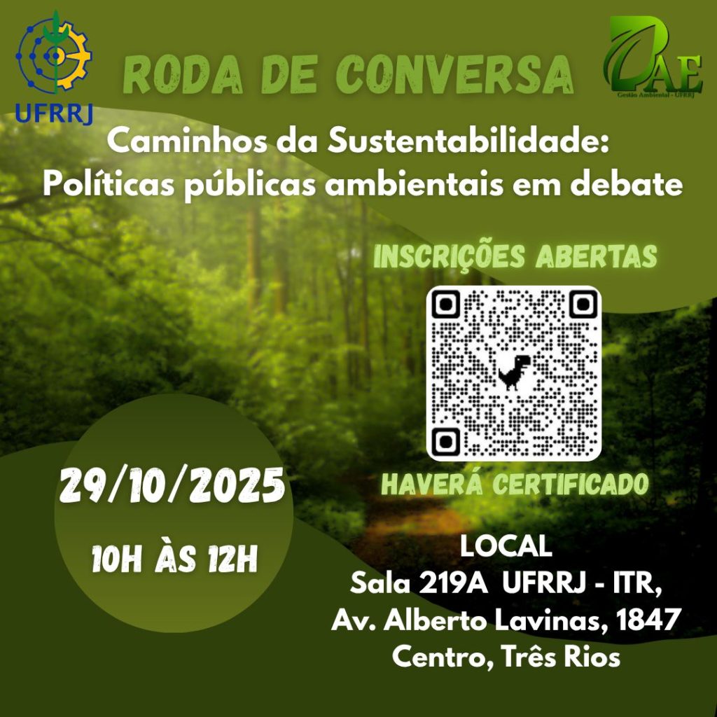 No próximo dia 29 de outubro de 2025, das 10h às 12h, o Instituto Três Rios da Universidade Federal Rural do Rio de Janeiro (UFRRJ) sediará a Roda de Conversa “Caminhos da Sustentabilidade: políticas públicas ambientais em debate”.