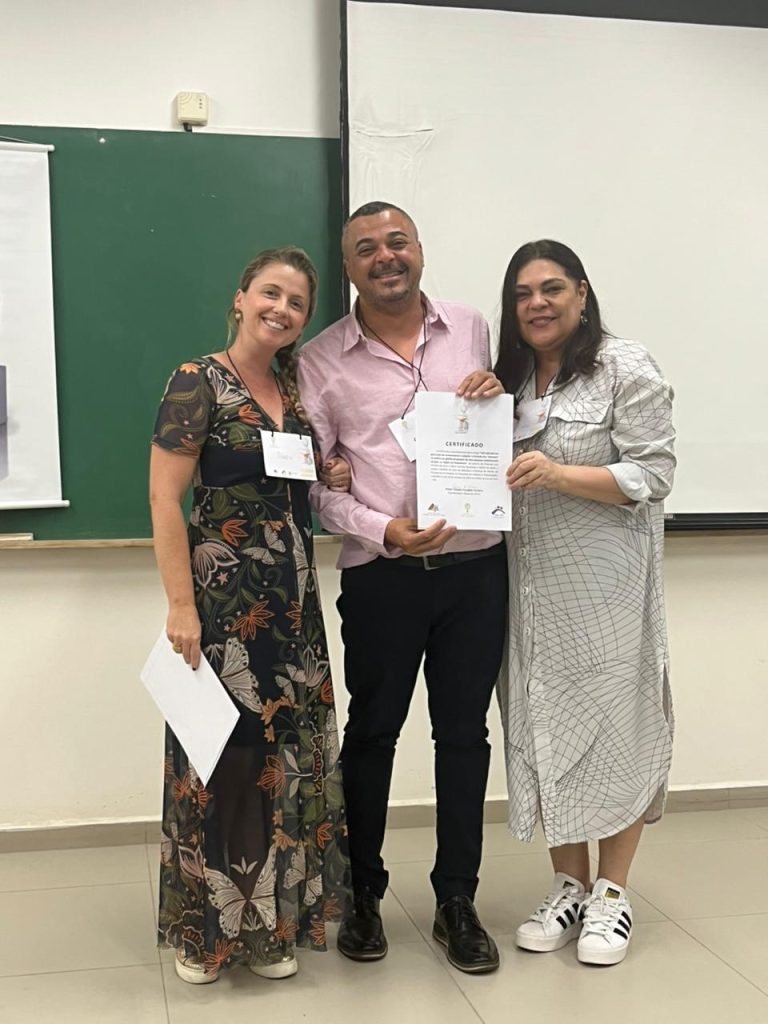 O artigo “‘O trabalho é uma das coisas mais importantes para mim’: vivências de prazer e sofrimento no trabalho para pessoas neurodiversas”, do estudante Franklin dos Santos, foi eleito o melhor na categoria geral. O estudante foi orientado de TCC da professora Débora Ferreira, que também é coautora do texto premiado.