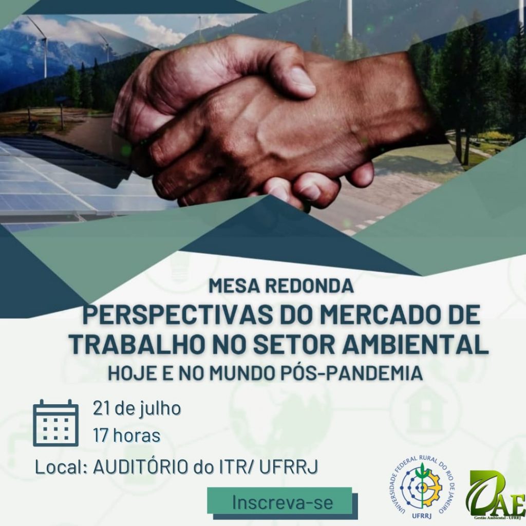 O Programa de Acompanhamento de Egressos do Curso de Graduação Bacharelado em Gestão Ambiental da UFRRJ, coordenado pela Profa. Dra. Julianne Milward,  irá promover a Mesa Redonda “Perspectivas do Mercado de Trabalho no Setor Ambiental Hoje e no Mundo Pós-pandemia”, no dia 21 de julho de 2022, às 17h, no auditório do Instituto Três Rios/UFRRJ.