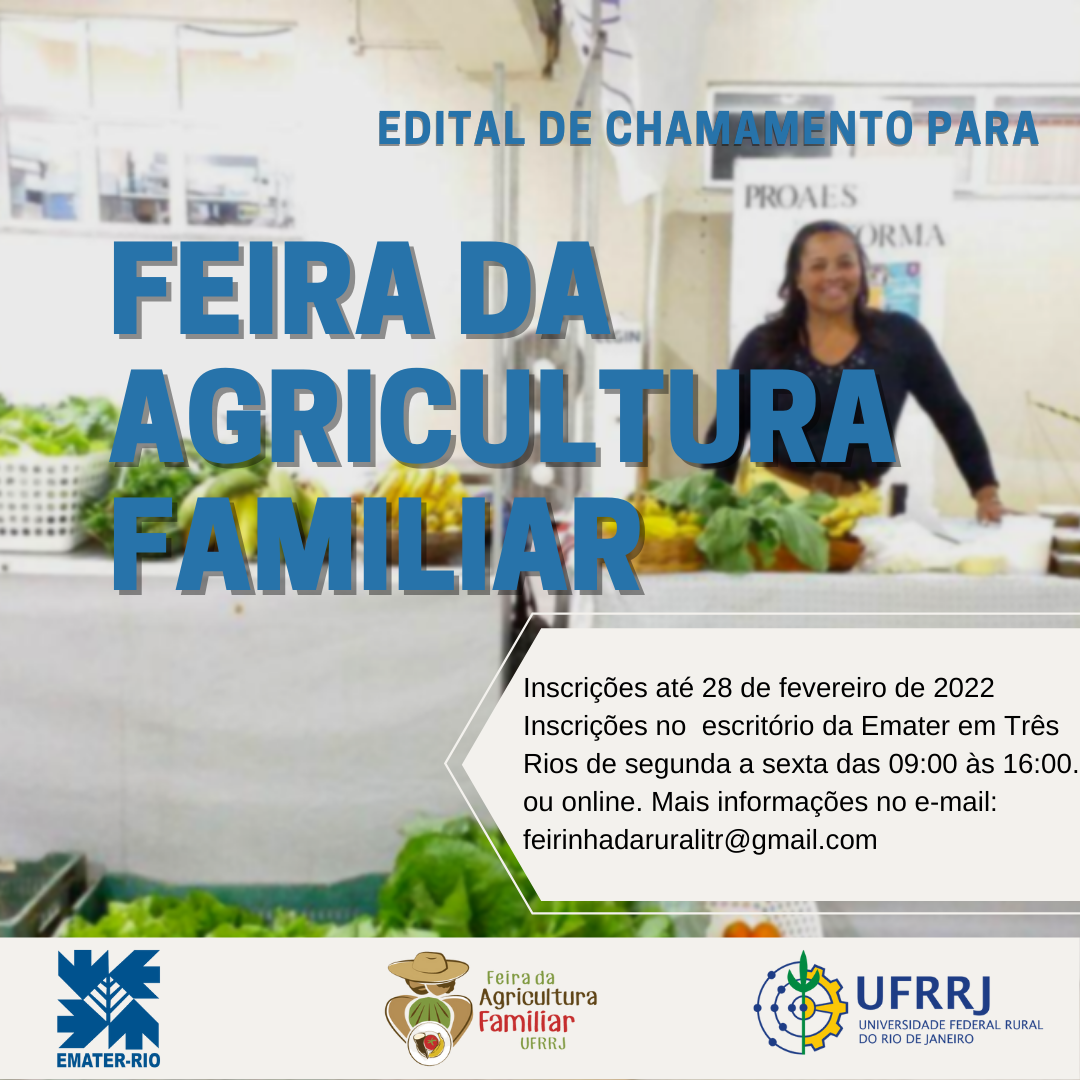 Edital que tratou da formação de cadastro para participar da Feira da Agricultura Familiar (Feirinha da Rural; parceria UFRRJ-Emater-Rio), que ocorre no Campus Três Rios, na Avenida Prefeito Alberto Silva […]