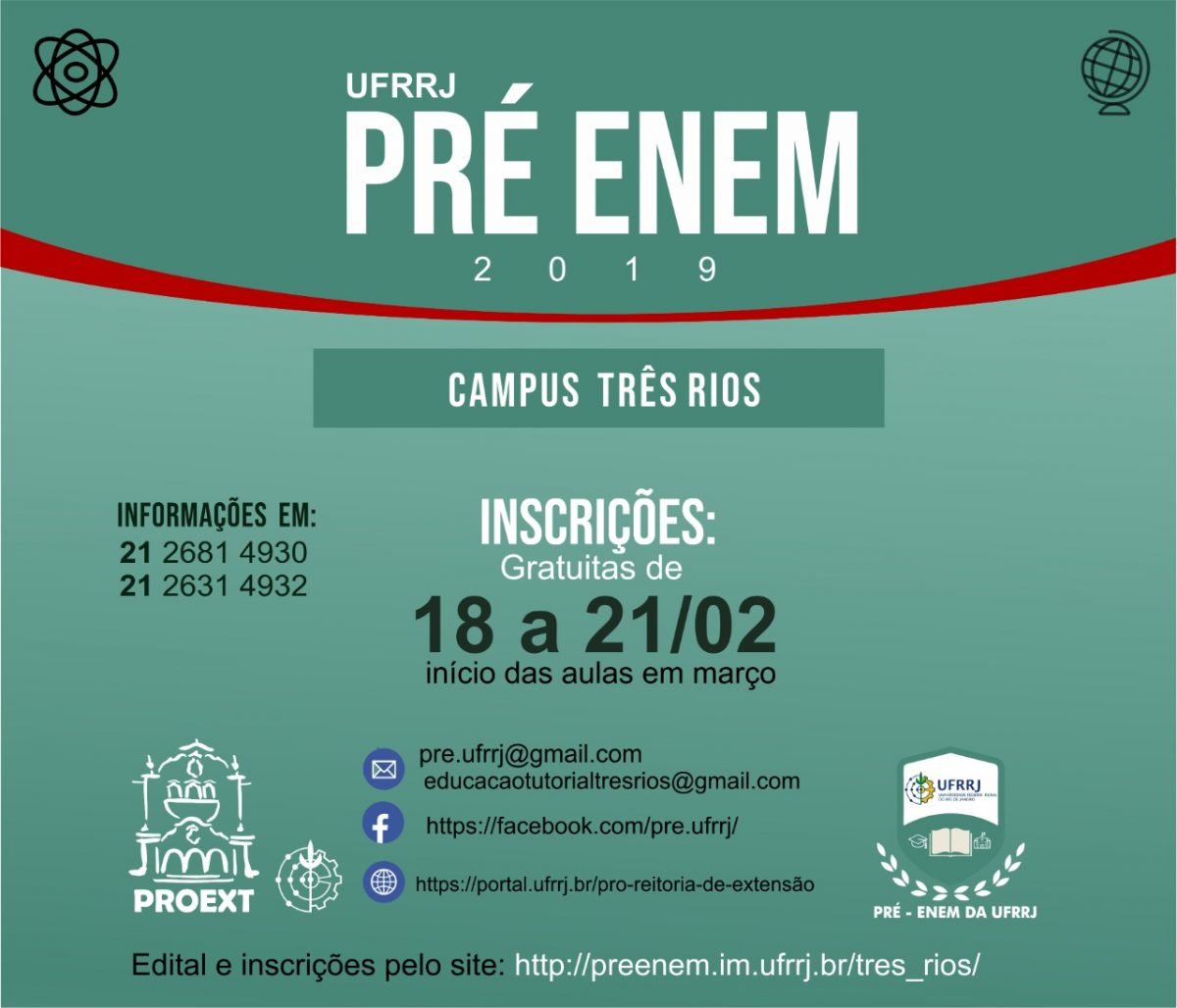 Está divulgado o resultado final da seleção de tutores do Campus de Três Rios. Os tutores podem procurar a Profa Fabiola na sexta, dia 05/04/2019, sala 225 B (sala do […]
