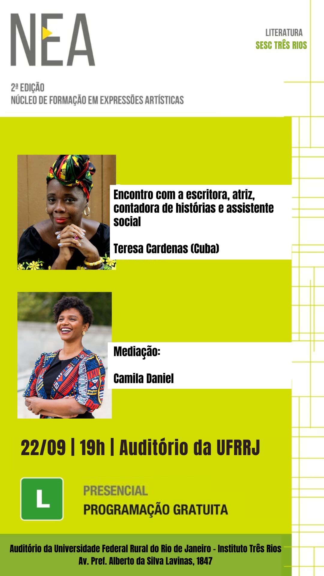 A artista afro-cubana Teresa Cárdenas participará de uma roda de conversa no Instituto Três Rios (ITR/UFRRJ). Entre seus trabalhos está uma vasta obra literária cujo protagonismo está em personagens negras. […]