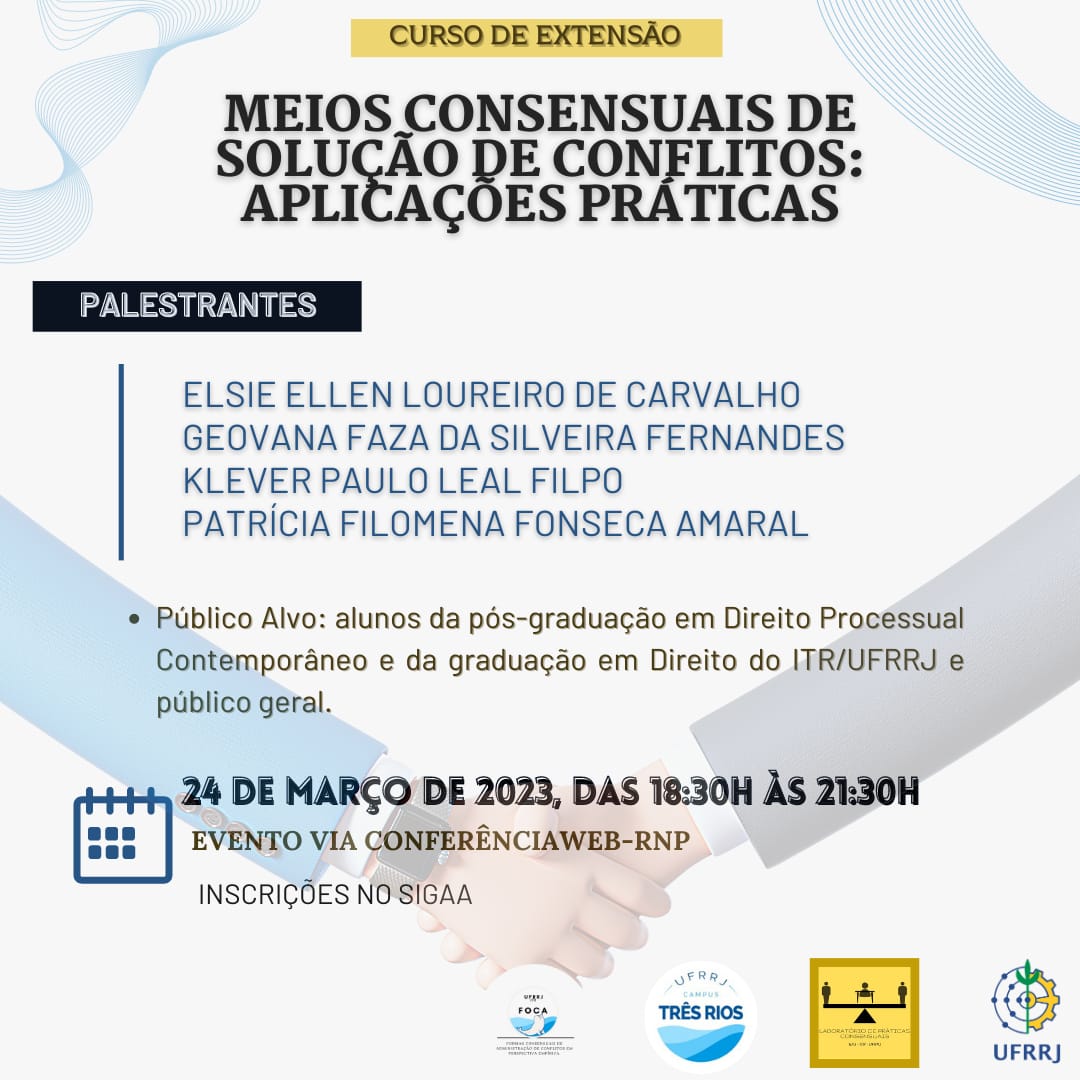 Alô, estudantes da graduação em Direito e da pós em Direito Processual Contemporâneo do ITR/UFRRJ! Estão abertas as inscrições para o curso de extensão “Meios consensuais de solução de conflitos: […]